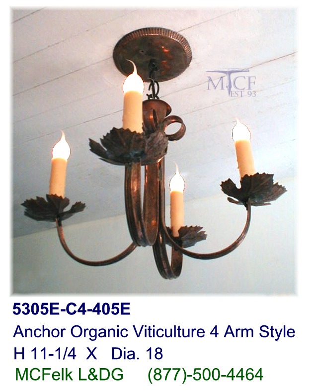 Takes: 4-60Watt elc. Candles. (includes: Custom floral drip pan grape leaf design 4ea. Of the same pattern user design choice, plus #405 canopy kit.)