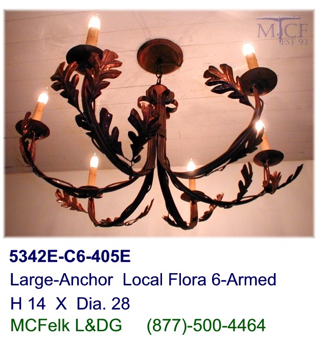 Takes 6-60Watt max. elc. candles,(includes #405 canopy kit) {Options: Oak leaf and or choice other floral parts, up to 4 per arm with acorns other like prts., etc.}