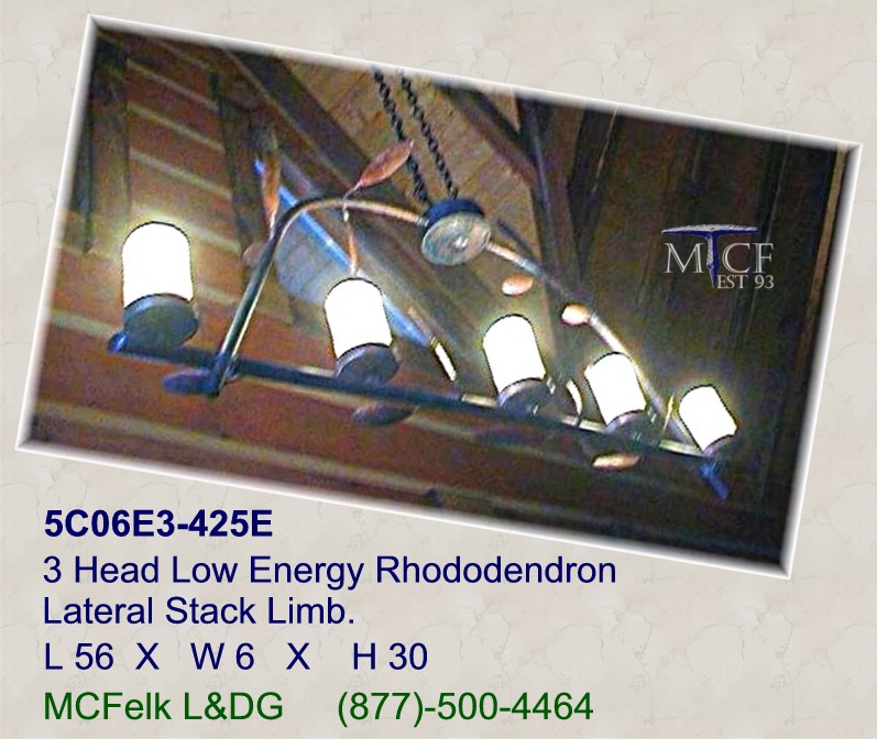 3 Head Low Energy Rhododendron Lateral Stack Limb Chandelier.